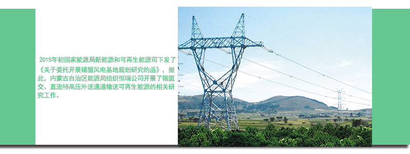 另外,受阿拉善盟政府的委托,我公司研究編制了《內(nèi)蒙古阿拉善盟敖倫布拉格±800千伏直流特高壓外送通道配套電源規(guī)劃報(bào)告》,上報(bào)國(guó)家能源局。之后,“阿拉善地區(qū)以輸送可再生能源為主的電力通道”被列入國(guó)家《可再生能源發(fā)展“十三五”規(guī)劃》進(jìn)行研究論證。